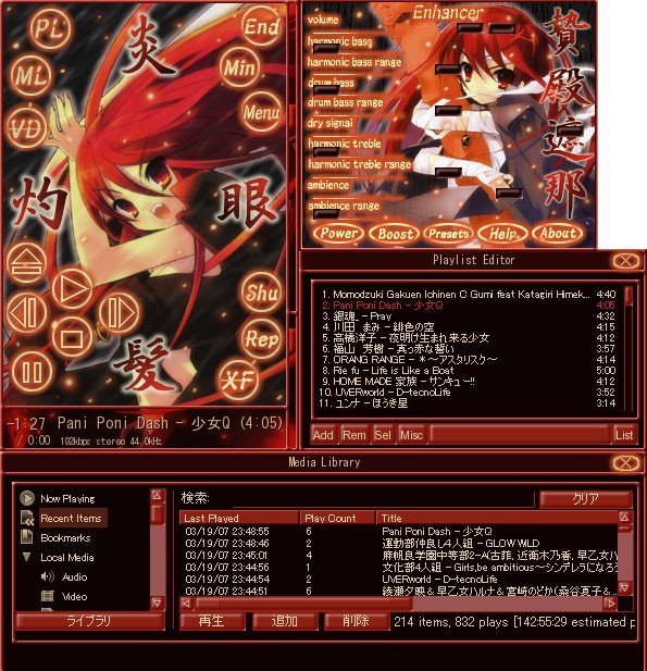 Winampのスキンを変えて見ました。ハルヒとシャナ。今はシャナを愛用中